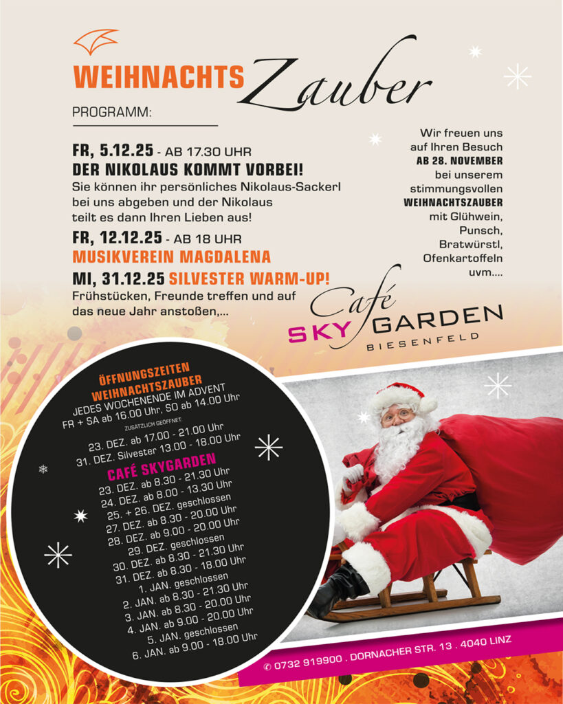 Verwöhnen Sie sich mit einer wohlverdienten Pause und stoßen Sie im Café Skygarden mit einem erfrischenden Glas Prosecco an. Ob zum Feiern oder einfach, um den Moment zu genießen – der perfekte Drink, um sich zu entspannen und neue Energie zu tanken!